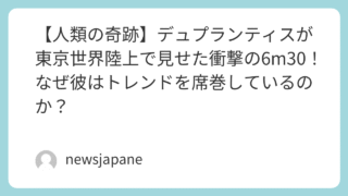 エンタメ 【人類の奇跡】デュプランティスが東京世界陸上で見せた衝撃の6m30!なぜ彼はトレンドを席巻しているのか? 東京世界陸上でデュプランティスが衝撃の6m30世界新記録を樹立!なぜ彼はトレンドになっているのか?世界陸上3連覇、14回目の記録更新という異次元の強さと、その魅力を初心者にも分かりやすく解説します。 2025.09.16 エンタメ