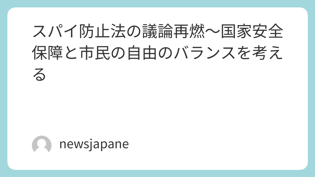 スパイ防止法の議論は、単なる賛成・反対の二元論で片付けられるものではありません。国家の安全保障と市民の自由という、どちらも重要な価値を両立させるための建設的な議論が求められています。