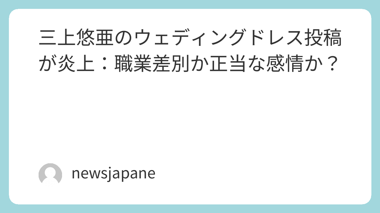 2025年7月27日、元セクシー女優でタレントの三上悠亜がボートレース徳山のイベントに出演し、純白のウェディングドレス姿でインスタグラムに写真を投稿しました。しかし、この投稿が思わぬ形で大きな議論を呼ぶことになりました。