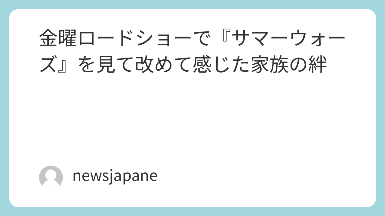 『サマーウォーズ』は、家族の大切さとデジタル社会の危険性を描いた傑作です。何度見ても新しい発見があり、年齢を重ねるごとに違った視点で楽しめる作品だと思います。今夜改めて見て、家族や大切な人たちとのつながりを見つめ直すきっかけになりました。